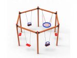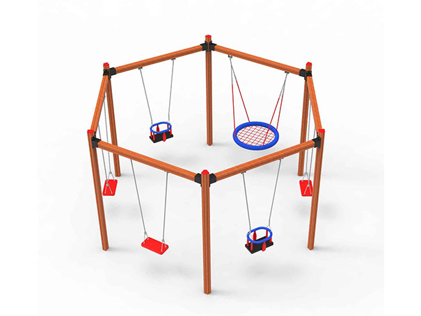 Игралиште ИстраживачЈедан од сталних фаворита у областима игралишта: Hexagon Swing. Овај производ има чврст метални конструкторски греду, првокласне дрвене столове, stainlees челичне повезне хардвере и европске безбедносне стандарде тестиране седишта за љуљашке.